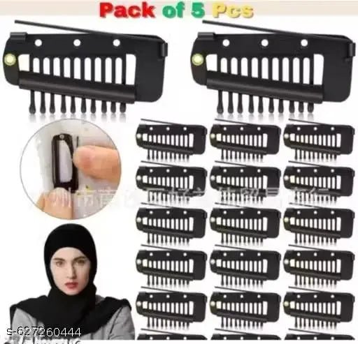 5psc Chunni Clips With Safety Pins , Wig Clips Strong Dupatta Grip Clip Flat Dupatta Setting Clips Hair Extension Clips For Woman Hijab Veil Hair Extensions Hairpieces (Black,5pcs))